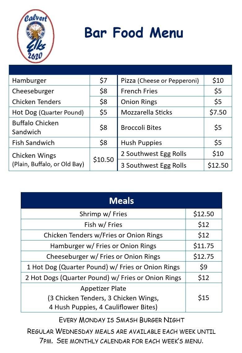 Bar Food Available on nights that the lodge is open.